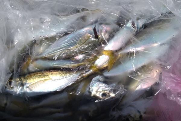 最初は25cm位のサバが混じりましたが、少しするとすべてアジ。船の下は常にアジだらけで凄いことになってました。
