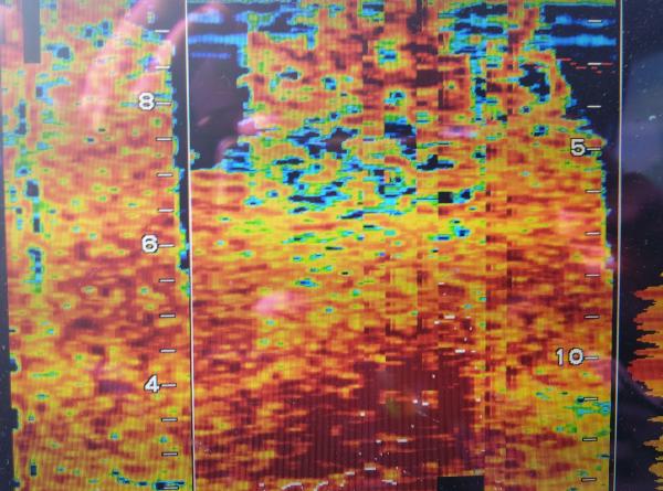 絶対に獲りたかったポイントでしたが、魚探の反応に乗せるとサーっと消えてしまう状態でアタリもなし。