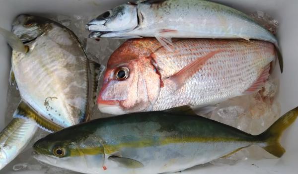 マダイ、イナダ、マアジ(小アジ)、デカイワリ、チダイ、サバなど。